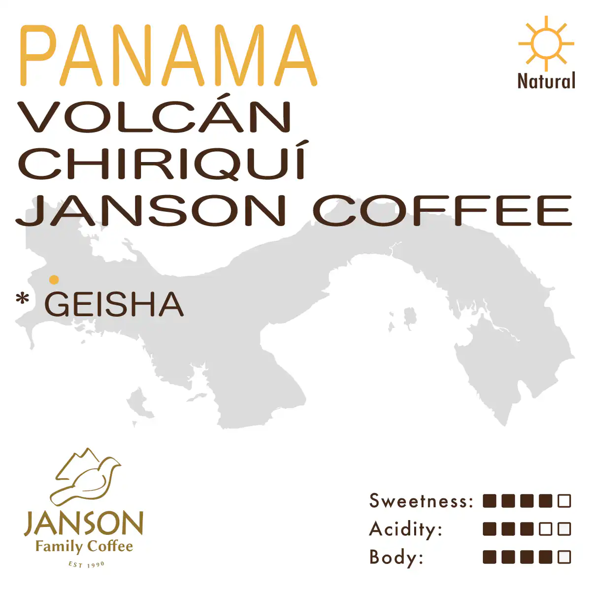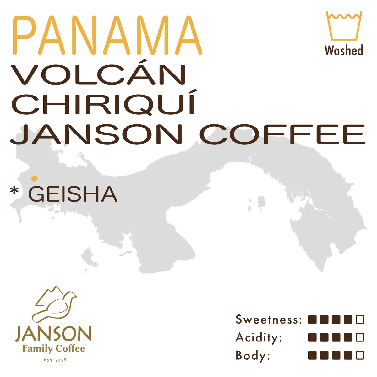Panama – Volcán – Chiriquí – Janson Coffee Farm (Washed) – Geisha Lot:117
